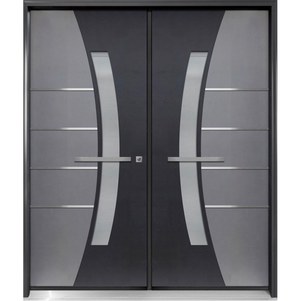 A premium high-quality entry door with solid fiberglass skin design and stainless steel on the door panel - DI-01 (Contemporary Collection).