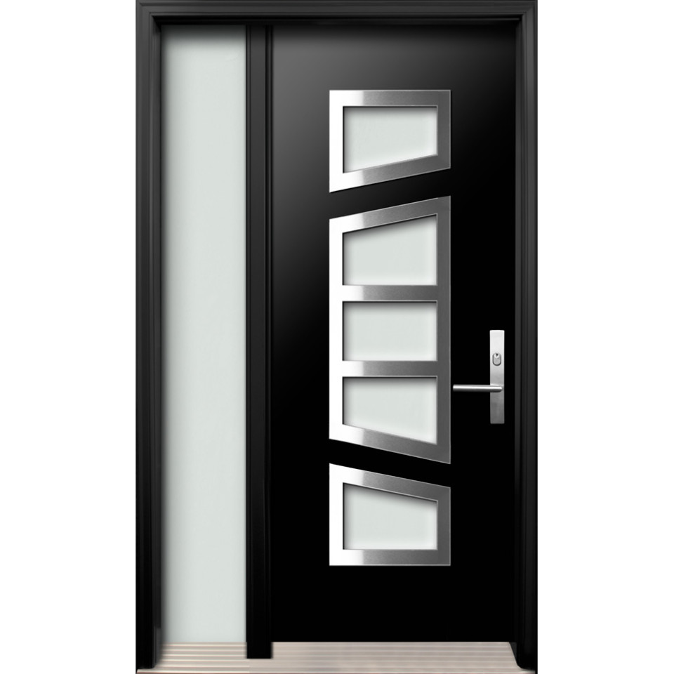 A premium high-quality entry door with solid stainless steel design on the door panel - DI-09 (Contemporary Collection).