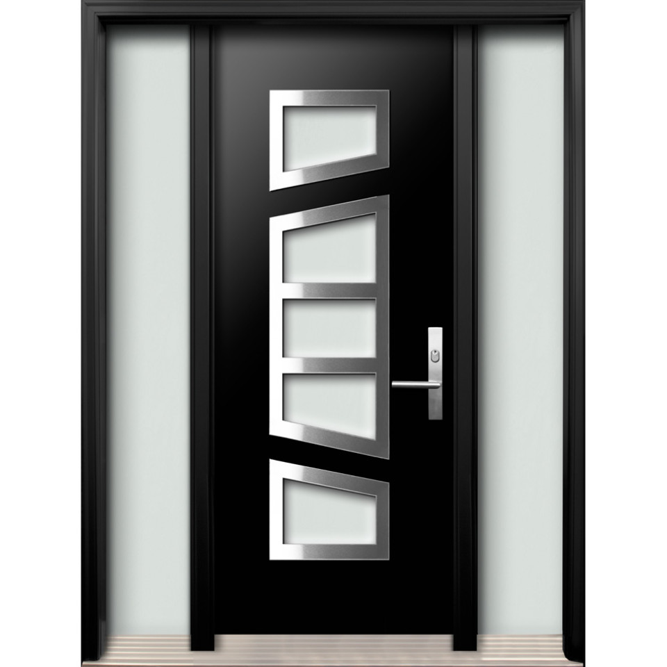 A premium high-quality entry door with solid stainless steel design on the door panel - DI-09 (Contemporary Collection).