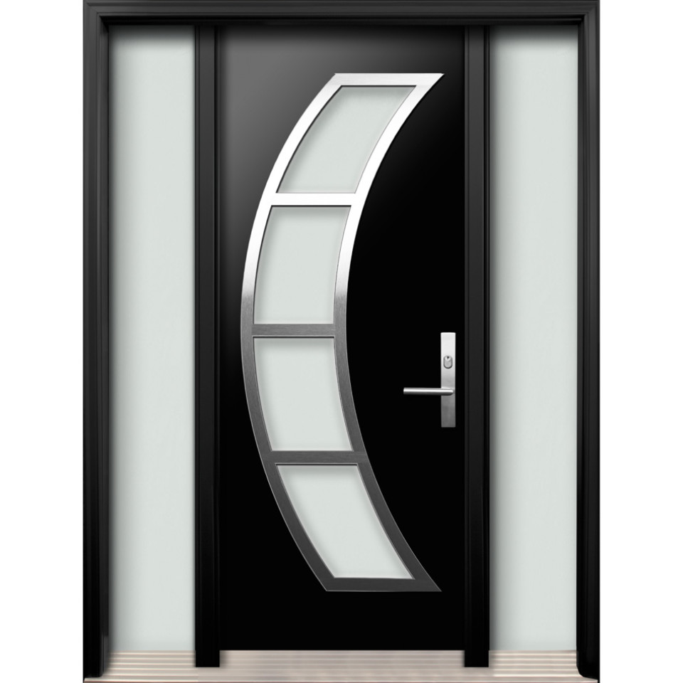 A premium high-quality entry door with solid stainless steel design on the door panel - DI-27 (Contemporary Collection).